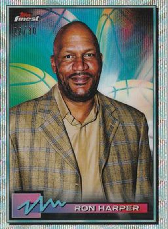 The Ron Harper 2021 Topps Finest #14 Wave /30 card is 1 of 23 Ron Harper's card variations in the 2021 Topps Finest set being tracked by Sports Card Investor, including Base, Refractor, Atomic /299, Purple /250, and Speckle /199.