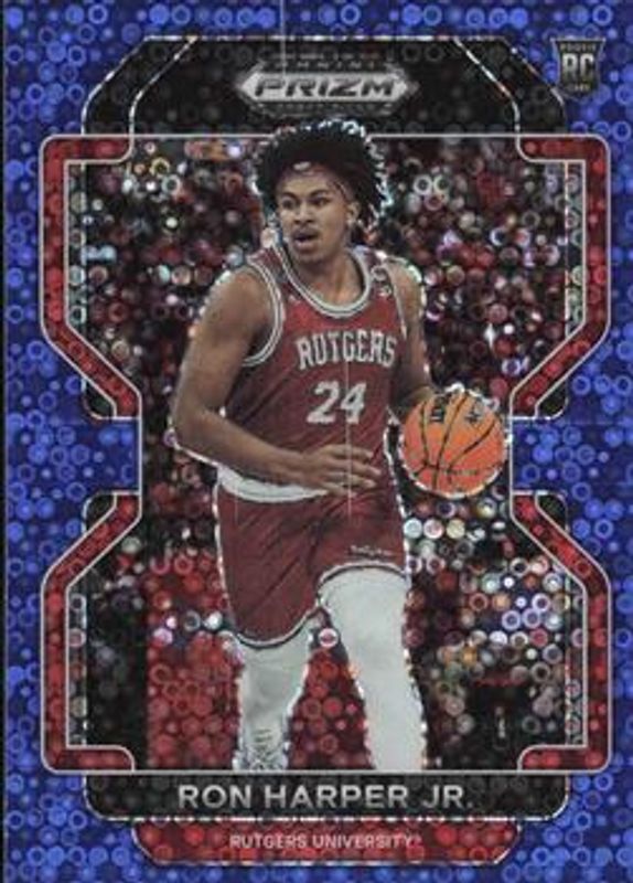 The Ron Harper 2022 Prizm Draft Picks #100 Blue Circles card is 1 of 52 Ron Harper's card variations in the 2022 Prizm Draft Picks set being tracked by Sports Card Investor, including Base, Choice Blue Yellow & Green, Choice Tiger Stripe, Green, and Green Wave.