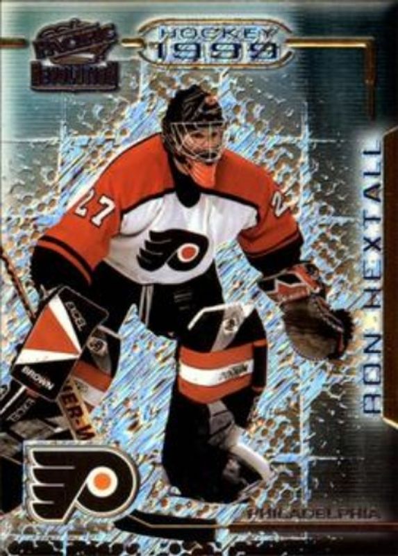 The Ron Hextall 1998 Pacific Revolution #104 Base card is 1 of 3 Ron Hextall's card variations in the 1998 Pacific Revolution set being tracked by Sports Card Investor, including Red /299, and Ice Shadow /99.