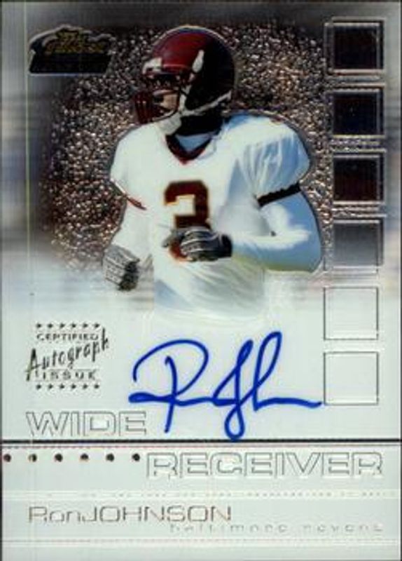The Ron Johnson 2002 Topps Finest #130 Base Rookie card is 1 of 4 Ron Johnson's card variations in the 2002 Topps Finest set being tracked by Sports Card Investor, including Refractor /250, Gold Refractor /25, and X-Fractor /20.