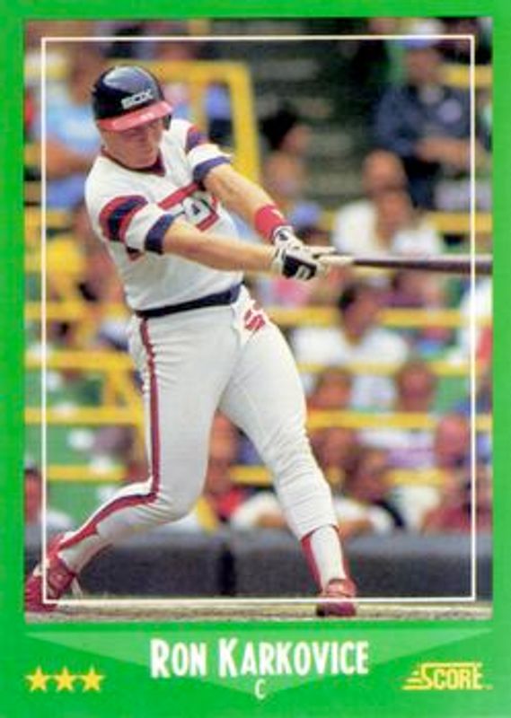 The Ron Karkovice 1988 Score #374 Base card is 1 of 2 Ron Karkovice's card variations in the 1988 Score set being tracked by Sports Card Investor, including Glossy.