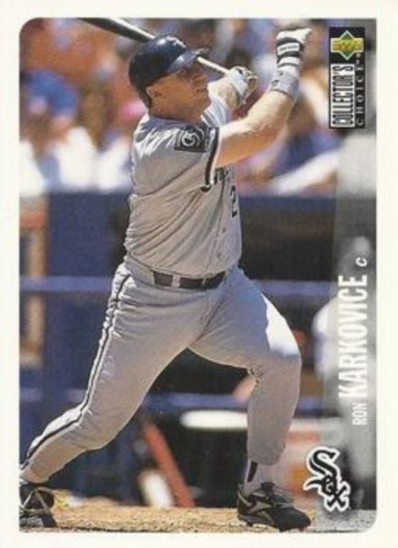 The Ron Karkovice 1996 Upper Deck Collector's Choice #508 Base card is 1 of 3 Ron Karkovice's card variations in the 1996 Upper Deck Collector's Choice set being tracked by Sports Card Investor, including Gold Signatures, and Silver Signatures.