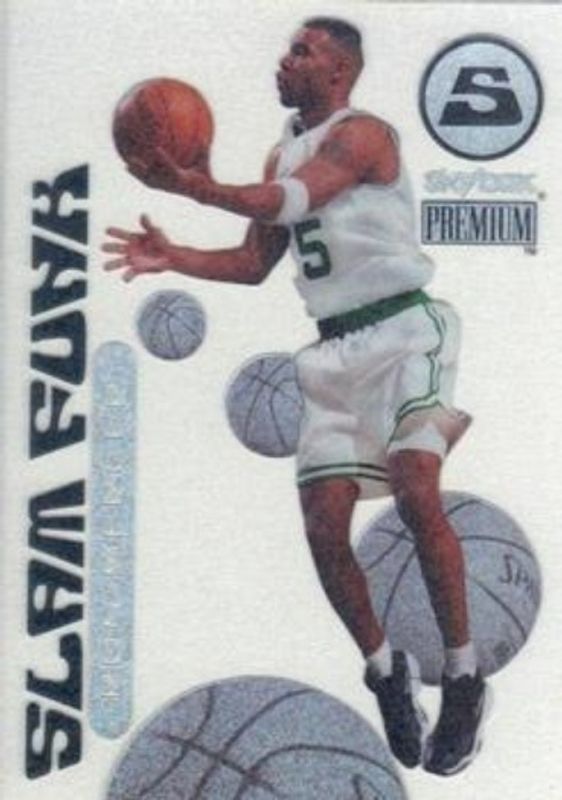 The Ron Mercer 1998 Skybox Premium #9-SF Slam Funk card is 1 of 16 Ron Mercer's card variations in the 1998 Skybox Premium set being tracked by Sports Card Investor, including #216 Base, #79 Base, #216 Ninety Fine - Star Rubies /50, #79 Star Rubies /50, and #216 Star Rubies /50.