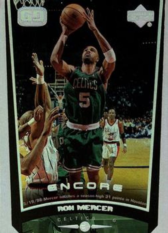 The Ron Mercer 1998 Upper Deck Encore #6 Base card is 1 of 3 Ron Mercer's card variations in the 1998 Upper Deck Encore set being tracked by Sports Card Investor, including F/X /125, and Intensity.