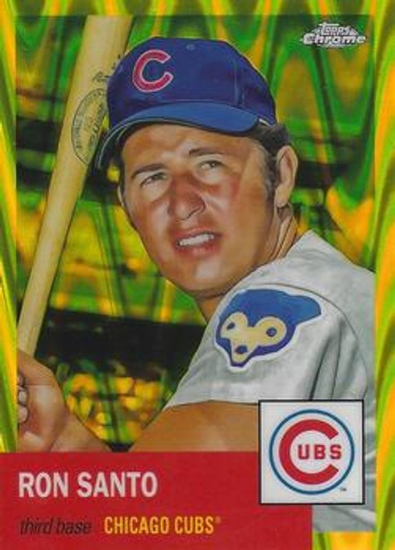 The Ron Santo 2022 Topps Chrome Platinum Anniversary #264 Yellow RayWave Refractor /250 card is 1 of 34 Ron Santo's card variations in the 2022 Topps Chrome Platinum Anniversary set being tracked by Sports Card Investor, including Base, Black & White Mini Diamond Refractor, Blue Prism Refractor, Gold Prism Refractor, and Prism Refractor.