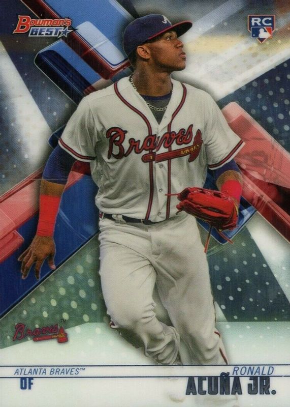 The Ronald Acuna Jr. 2018 Bowman's Best #51 Base Rookie card in Raw condition has moved up $2.99 (+37.4%) in the last 30 days and was last sold for $10.99 .