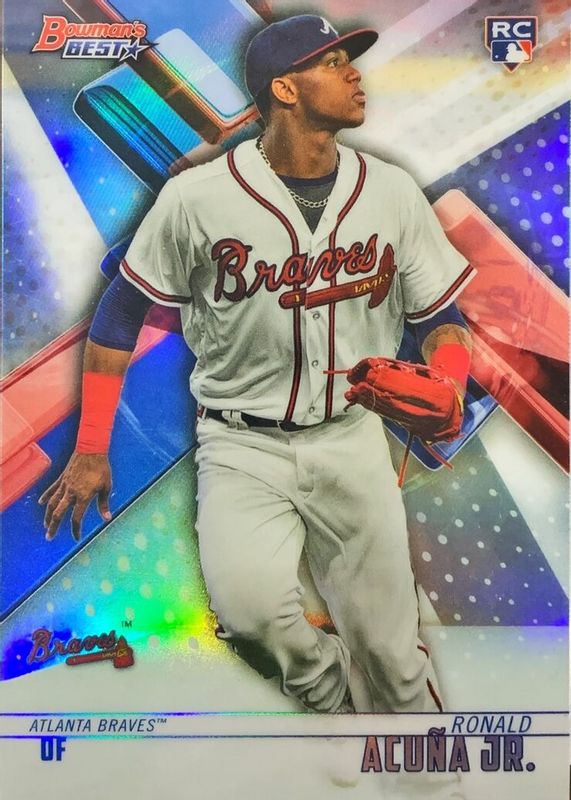 The Ronald Acuna Jr. 2018 Bowman's Best #51 Refractor Rookie card in Raw condition has moved up $14.01 (+1,415%) in the last 30 days and was last sold for $15.00 .