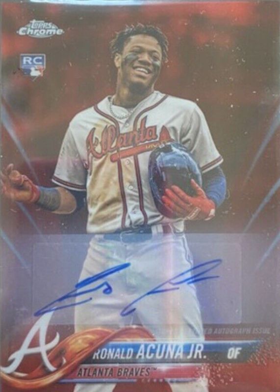 Auctions Ending Soon for Ronald Acuna Jr. 2018 Topps Chrome Update #HMT25 Autographs - Red Refractor /5 Rookie RAW