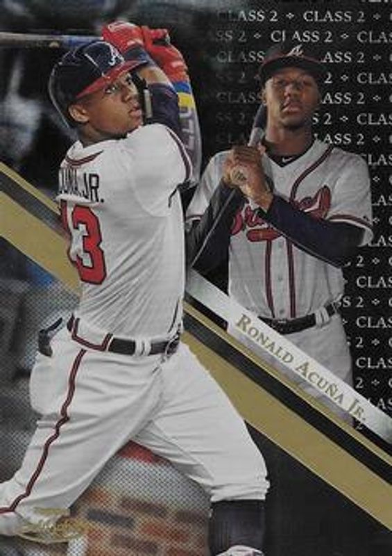 The Ronald Acuna Jr. 2019 Topps Gold Label #7 Class 2 Black card is 1 of 25 Ronald Acuna Jr.'s card variations in the 2019 Topps Gold Label set being tracked by Sports Card Investor, including Base, Class 2, Class 3, Class 1 Black, and Class 3 Black.