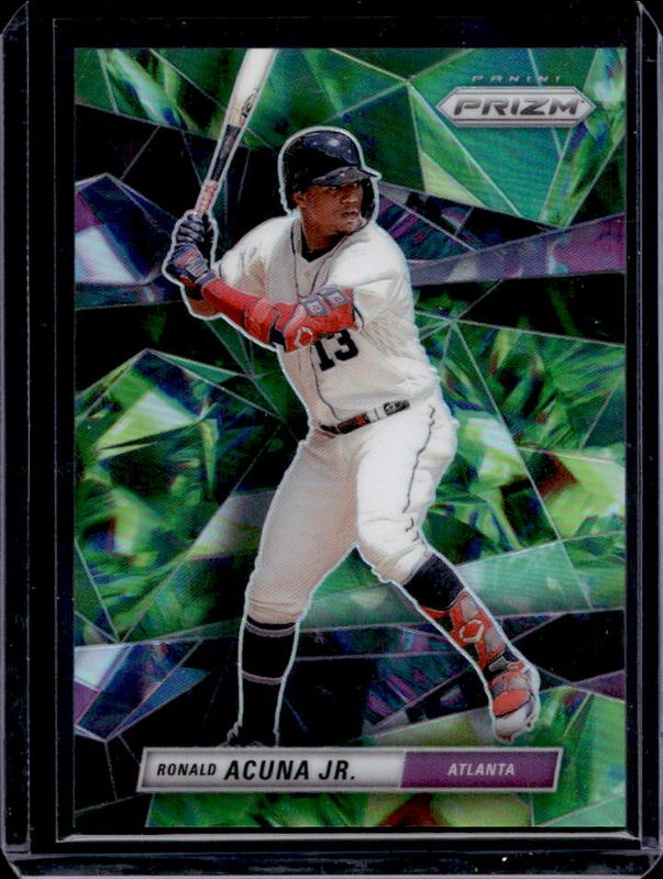 The Ronald Acuna Jr. 2020 Prizm #G-9 Gems card is 1 of 123 Ronald Acuna Jr.'s card variations in the 2020 Prizm set being tracked by Sports Card Investor, including Base, Blue, Carolina Blue, Cosmic Haze, and Green.