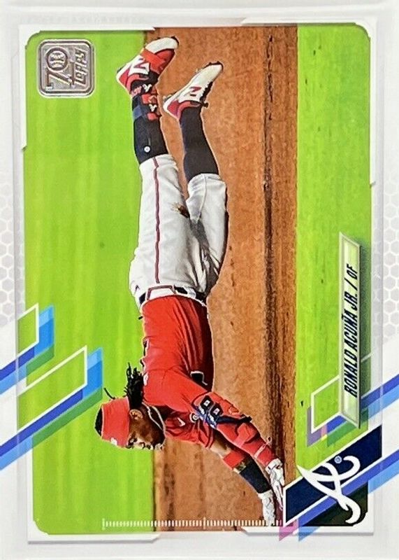 This card is 1 of 5 Ronald Acuna Jr.'s card variations in the 2021 Topps set being tracked by Sports Card Investor, including Orange Foil /299, Red Foil /199, SP Variation, and SSP Variation.