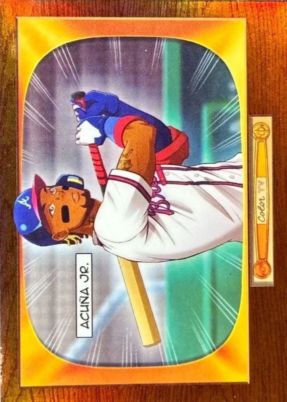 This card is 1 of 5 Ronald Acuna Jr.'s card variations in the 2024 Bowman set being tracked by Sports Card Investor, including 1955 Bowman Anime - Gold Refractor /50, 1955 Bowman Anime - Orange Refractor /25, 1955 Bowman Anime - Red Refractor /5, and 1955 Bowman Anime - Superfractor /1.