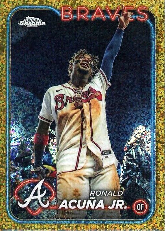 Recent Sales of Ronald Acuna Jr. 2024 Topps Chrome #250 Image Variation - Gold Speckle Refractor /50 (Reaching Up) Raw