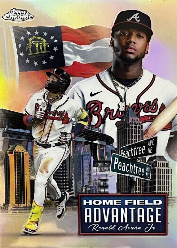 The Ronald Acuna Jr. 2024 Topps Chrome Update #HFAC-11 Home Field Advantage /(SSP) card in Raw condition has moved up $14.00 (+16.3%) in the last 30 days and was last sold for $100.00 .