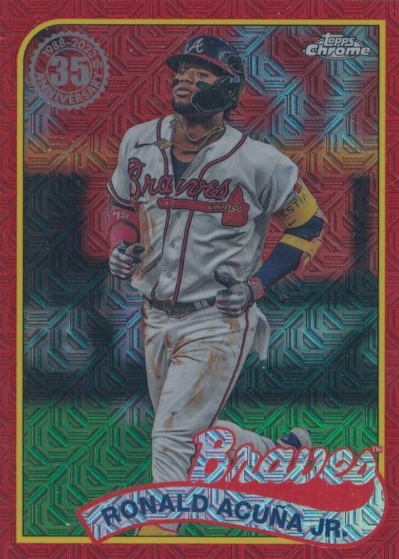 Auctions Ending Soon for Ronald Acuna Jr. 2024 Topps Silver Pack #T89C-28 1989 Chrome Promo - Red Refractor (Series 1) /5 RAW