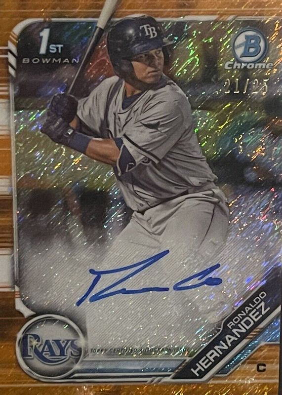 Recent Sales of Ronaldo Hernandez 2019 Bowman #CPA-RH Chrome Prospect Auto - Orange Shimmer Refractor /25 (1st) Raw