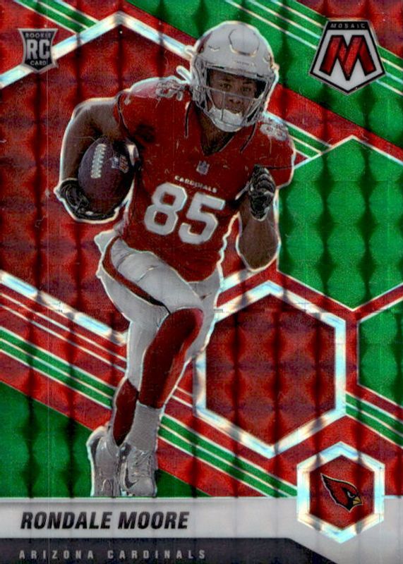 The Rondale Moore 2021 Mosaic #317 Choice Red & Green Rookie card in Raw condition has not changed in price in the last 30 days and was last sold for $1.65 .