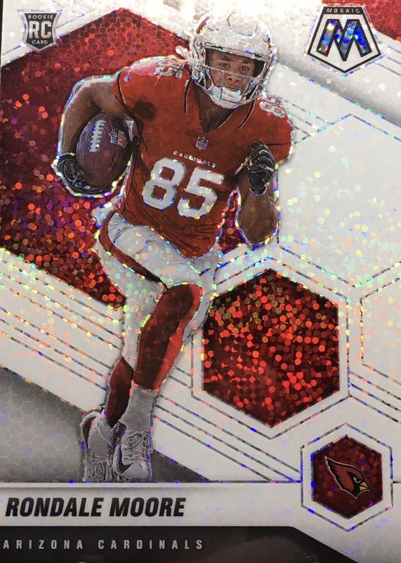 The Rondale Moore 2021 Mosaic #317 White Sparkle /(SSP) Rookie card in Raw condition has not changed in price in the last 30 days and was last sold for $38.99 .