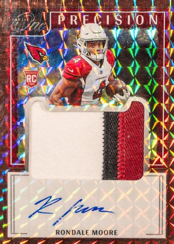 The Rondale Moore 2021 One #317 Precision Rookie Patch Autographs - Bronze (/35) card in Raw condition has not changed in price in the last 30 days and was last sold for $16.50 .