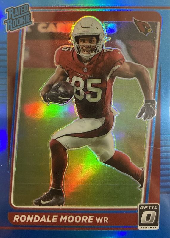 This card is 1 of 45 Rondale Moore's card variations in the 2021 Optic set being tracked by Sports Card Investor, including Base, Blue Hyper, Blue Scope, Bronze, and Green Velocity.