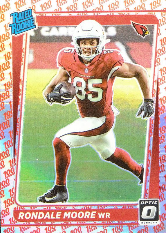 The Rondale Moore 2021 Optic #217 One Hundred /(SSP) Rookie card in Raw condition has not changed in price in the last 30 days and was last sold for $25.00 .