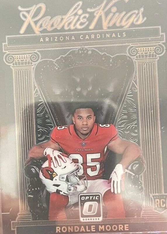 The Rondale Moore 2021 Optic #RK-16 Rookie Kings - Black Pandora /25 card in Raw condition has not changed in price in the last 30 days and was last sold for $15.75 .