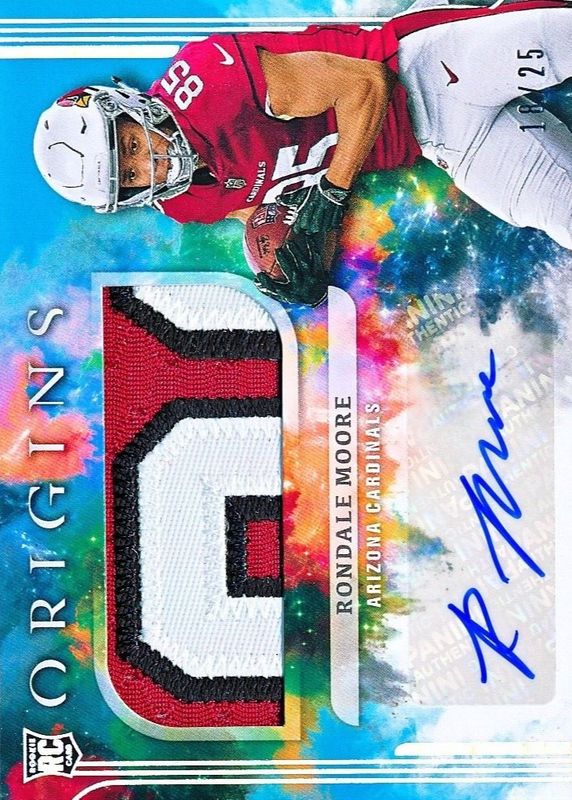 This card is 1 of 21 Rondale Moore's card variations in the 2021 Origins set being tracked by Sports Card Investor, including Origins Autographs - Gold Ink (/25), Origins Autographs - Silver Ink (/49), Rookie Autographs, Rookie Jumbo Jersey Autographs, and Rookie Autographs - Red /99.