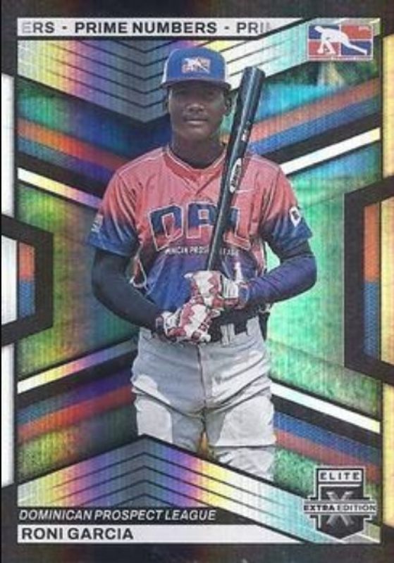 The Roni Garcia 2023 Elite Extra Edition #174 Prime Numbers B /60 card is 1 of 48 Roni Garcia's card variations in the 2023 Elite Extra Edition set being tracked by Sports Card Investor, including Base, Pink, Signatures, Status Green /499, and Signatures die-cut /399.