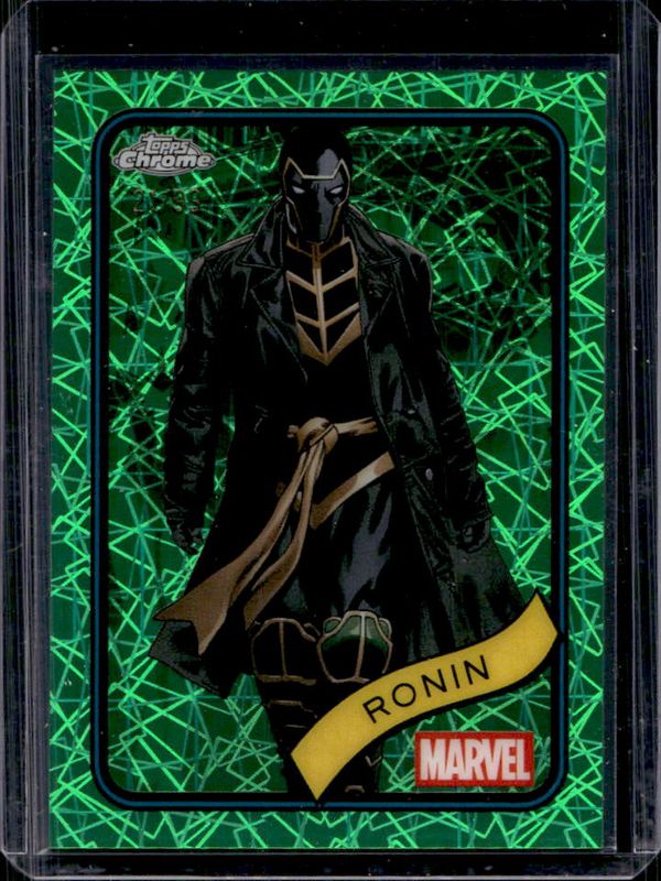 The Ronin 2025 Topps Chrome #4 Hulk Green Lazer Refractor /99 card is 1 of 35 Ronin's card variations in the 2025 Topps Chrome set being tracked by Sports Card Investor, including Base, Refractor, Yellow Lava Refractor, Spider Web Refractor /399, and Blue Refractor /299.