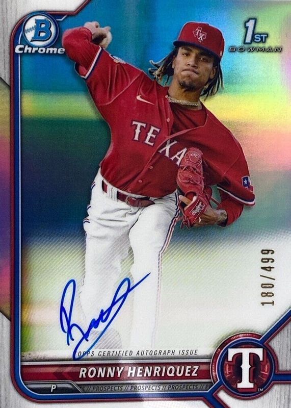2022 BOWMAN CHROME REFRACTOR /499 1ST PROSPECT AUTO RONNY HENRIQUEZ RANGERS