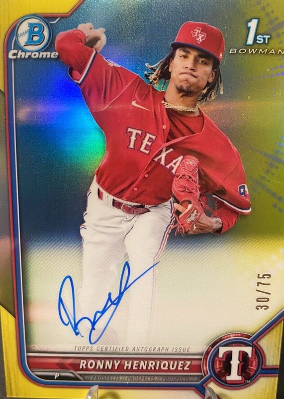 RONNY HENRIQUEZ 1st Bowman Chrome 2022 YELLOW REFRACTOR AUTO #/75 Twins,Rangers