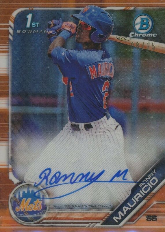 Ronny Mauricio 2019 Bowman #CPA-RM Chrome Prospect Auto - Orange Refractor /25 (1st) RAW Price Guide