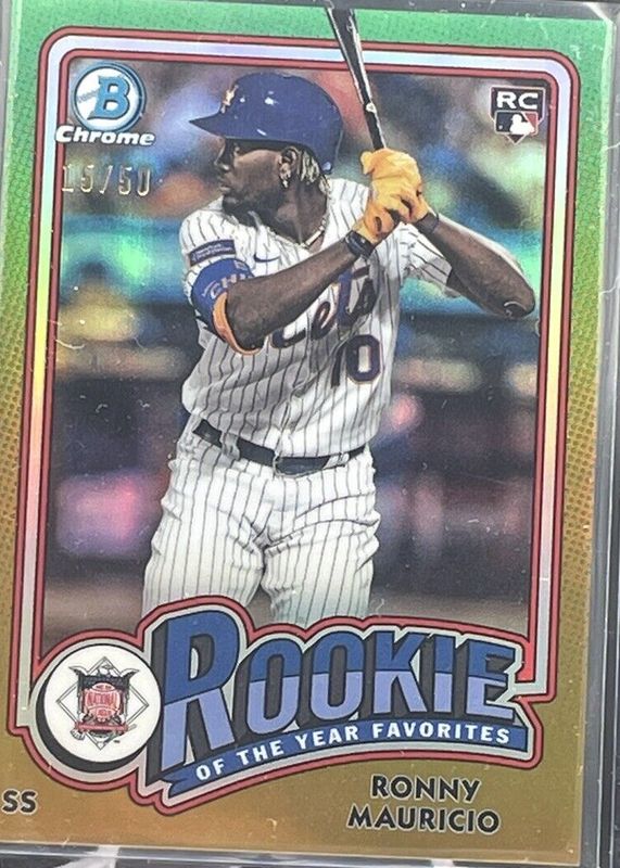 The Ronny Mauricio 2024 Bowman #ROY-1 Rookie of the Year Favorites - Gold Refractor /50 card in Raw condition has not changed in price in the last 30 days and was last sold for $3.25 .
