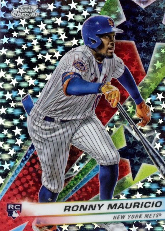 The Ronny Mauricio 2024 Topps Chrome Cosmic #SF-20 Starfractor Rookie card in Raw condition has not changed in price in the last 30 days and was last sold for $23.53 .