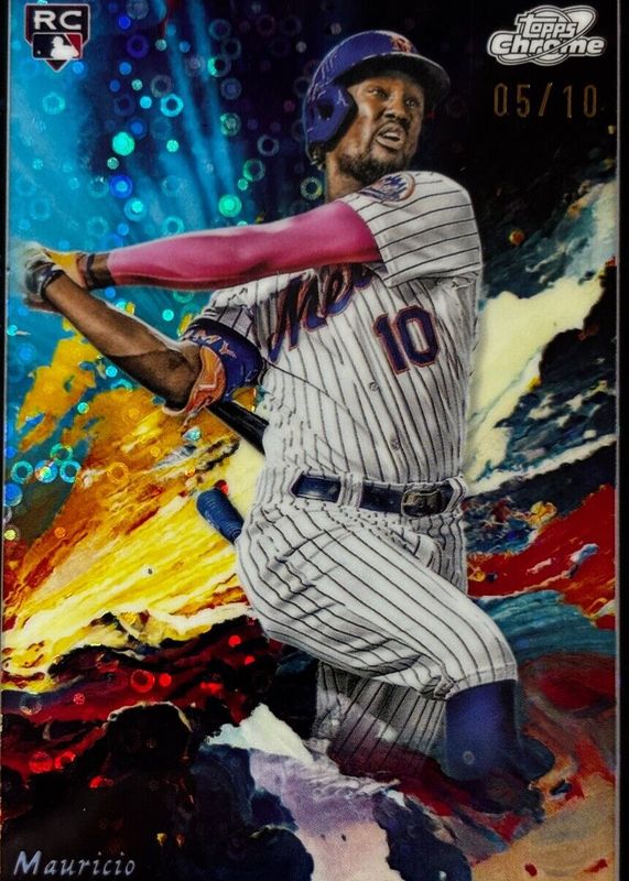 The Ronny Mauricio 2024 Topps Chrome Cosmic #STN-3 Stars in the Night - Black Eclipse Refractor /10 Rookie card in Raw condition has not changed in price in the last 30 days and was last sold for $85.00 .