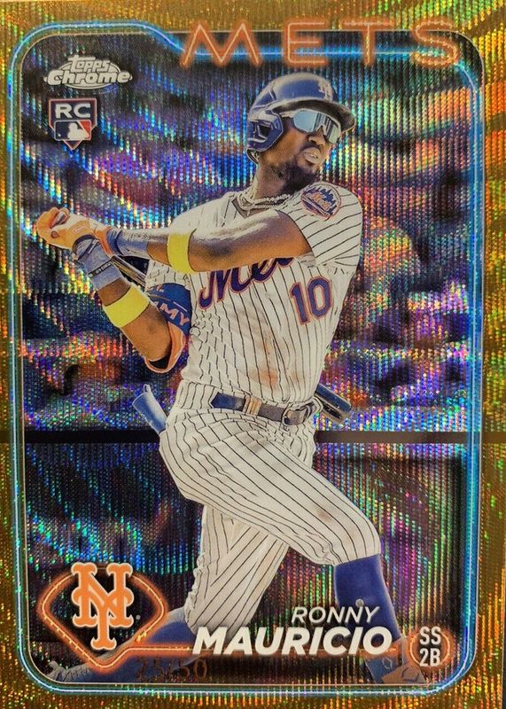 The Ronny Mauricio 2024 Topps Chrome #28 Gold Wave Refractor /50 Rookie card in Raw condition has not changed in price in the last 30 days and was last sold for $19.49 .