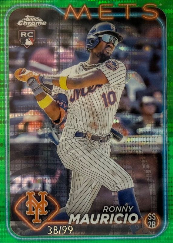2024 Topps Chrome Ronny Mauricio Green Refractor #’D /99 RC #28 Mets