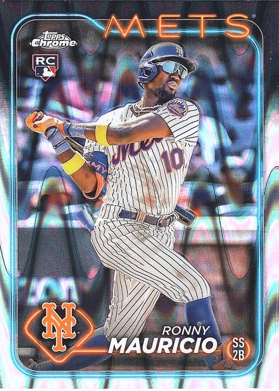 2024 Topps Chrome Ronny Mauricio RC Raywave Refractor Rookie #28 Mets 3-D 10
