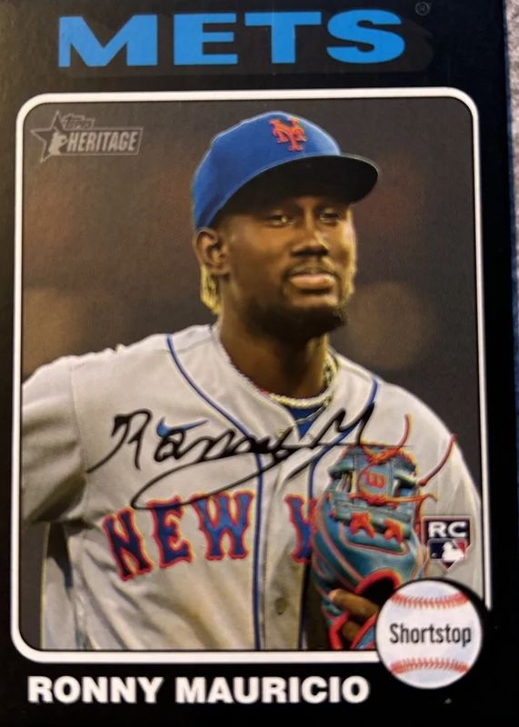This card is 1 of 6 Ronny Mauricio's card variations in the 2024 Topps Heritage set being tracked by Sports Card Investor, including Base, Black & White Image Variation, Flip Stock, Red Border, and White Border.