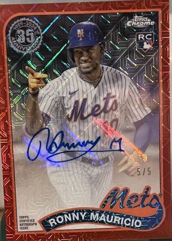 Ronny Mauricio 2024 Topps Silver Pack #2T89C-13 1989 Chrome Promo Autographs - Red Refractor (Series 2) /5 Rookie RAW Price Guide
