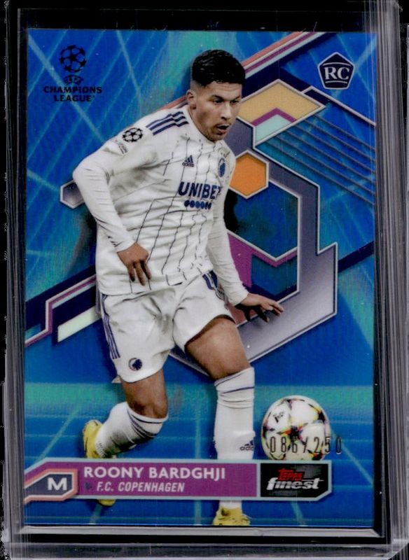 Roony Bardghji 2022 Topps Finest UEFA Club Competitions #92 Blue Aqua Vapor Wave Refractor /250 Rookie RAW Price Guide