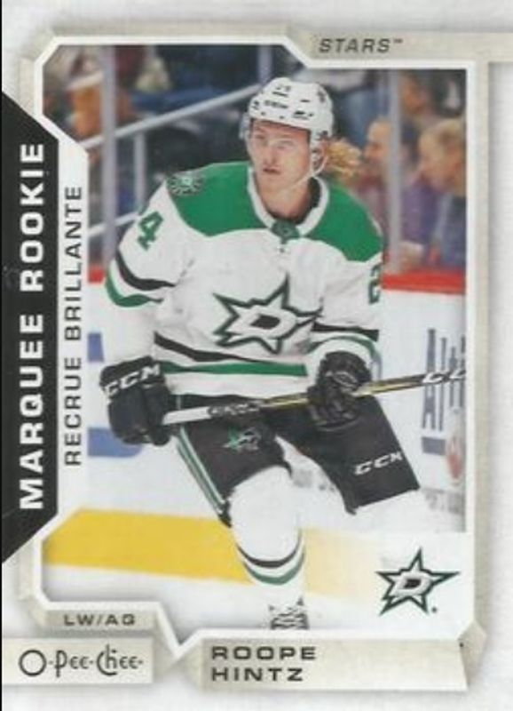 The Roope Hintz 2018 Upper Deck #630 2018 O-Pee-Chee Update Rookie card is 1 of 14 Roope Hintz's card variations in the 2018 Upper Deck set being tracked by Sports Card Investor, including Young Guns Base, Young Guns - Clear Cut, Young Guns - Jumbo, Young Guns - Silver Foil, and Young Guns - Speckled Rainbow Foil.