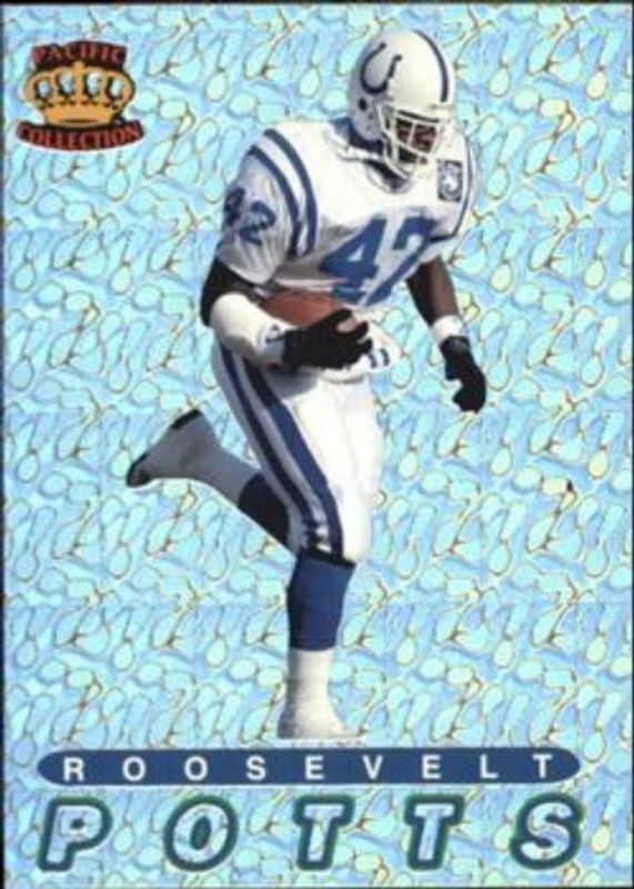 The Roosevelt Potts 1994 Pacific Prisms #91 Base card is 1 of 2 Roosevelt Potts' card variations in the 1994 Pacific Prisms set being tracked by Sports Card Investor, including Gold.