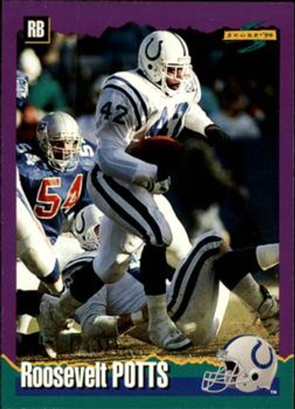 The Roosevelt Potts 1994 Score #143 Base card is 1 of 3 Roosevelt Potts' card variations in the 1994 Score set being tracked by Sports Card Investor, including Gold Zone, and Sophomore Showcase.