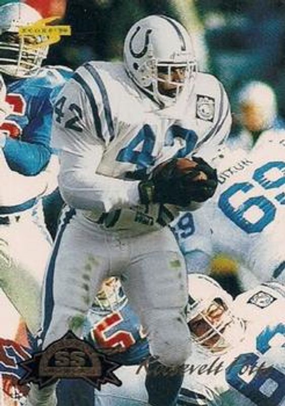 The Roosevelt Potts 1994 Score #SS7 Sophomore Showcase card is 1 of 3 Roosevelt Potts' card variations in the 1994 Score set being tracked by Sports Card Investor, including Base, and Gold Zone.