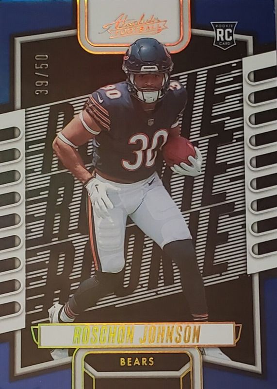 The Roschon Johnson 2023 Absolute #134 Blue Spectrum /50 Rookie card in Raw condition has not changed in price in the last 30 days and was last sold for $0.99 .