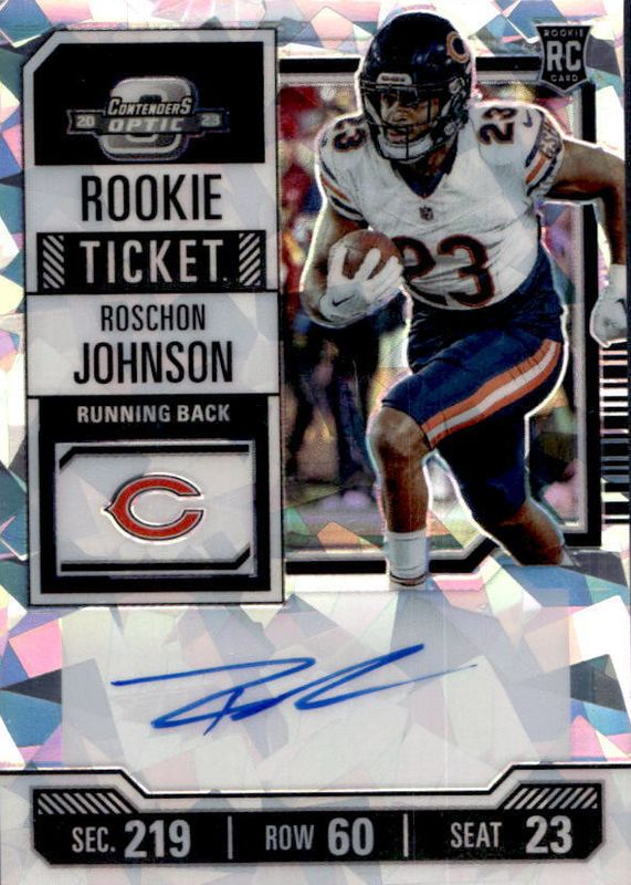 2023 Panini Contenders Optic Roschon Johnson RC Ticket Auto Cracked Ice /22
