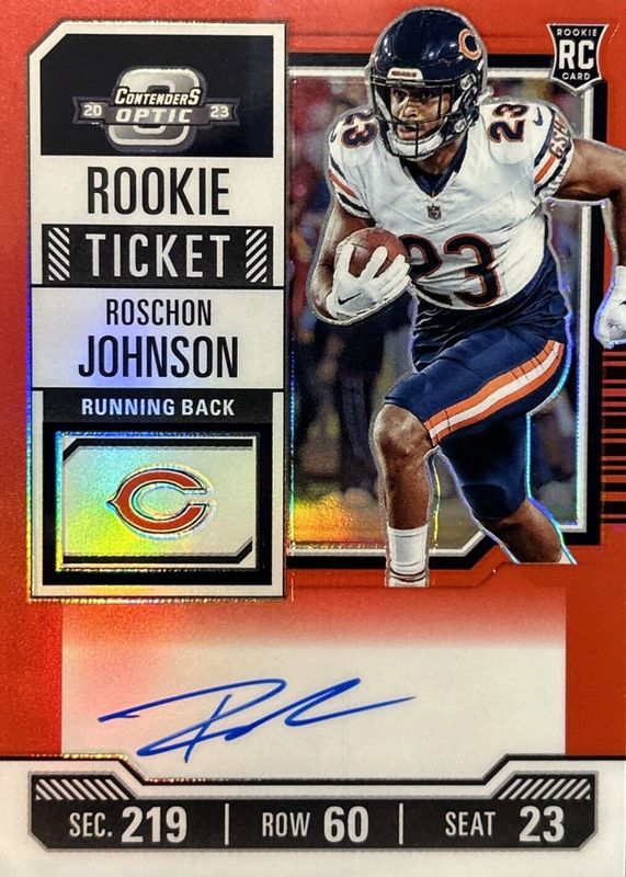 2023 Optic Contenders Rookie Ticket Red Roschon Johnson RC Auto /175 Bears