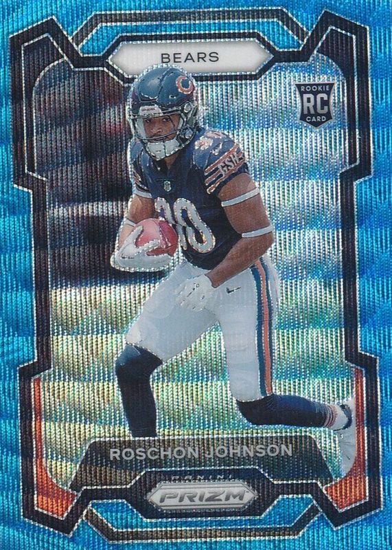 This card is 1 of 82 Roschon Johnson's card variations in the 2023 Prizm set being tracked by Sports Card Investor, including Base, Disco, Green, Green Ice, and Green Wave.
