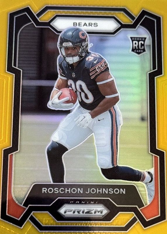 The Roschon Johnson 2023 Prizm #314 Gold /10 Rookie card in Raw condition has not changed in price in the last 30 days and was last sold for $135.00 .